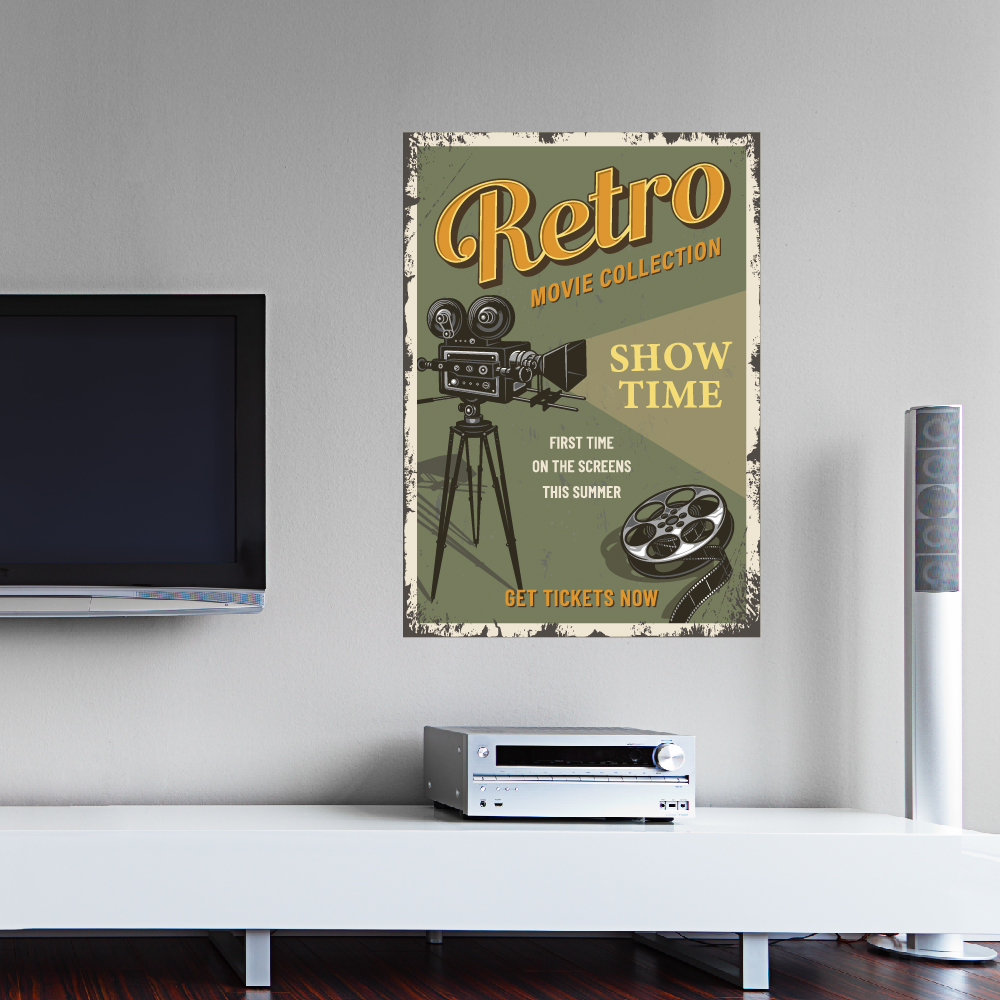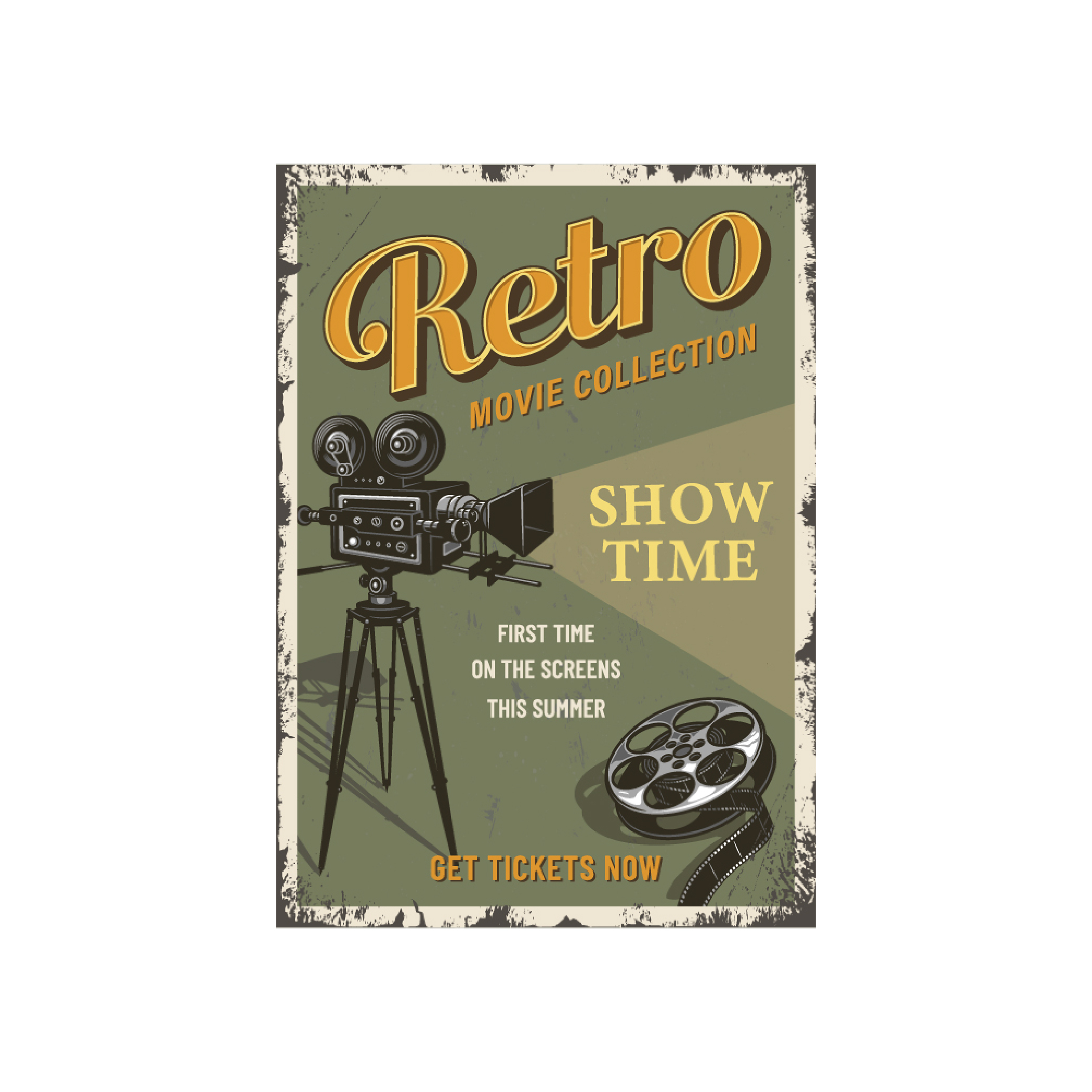 L’image met en lumière un élément du cinéma : affiche retro movie collection. Les éléments visibles rappellent l’ambiance des tournages, des projections ou de la création cinématographique, en lien direct avec l’univers du film.