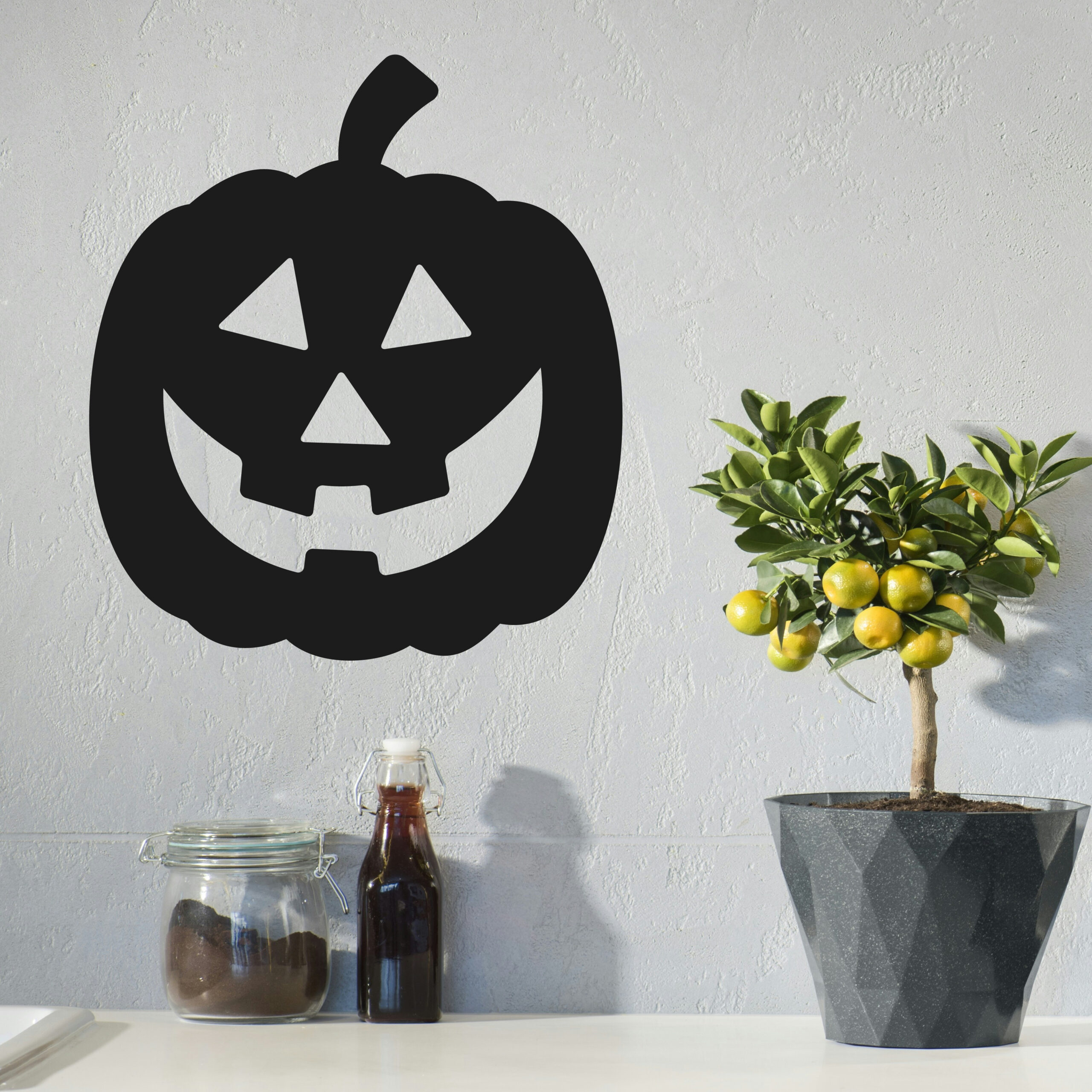 Le sujet principal est une citrouille, représenté de manière reconnaissable et cohérente avec un thème horreur. La composition privilégie la clarté et l’impact visuel.