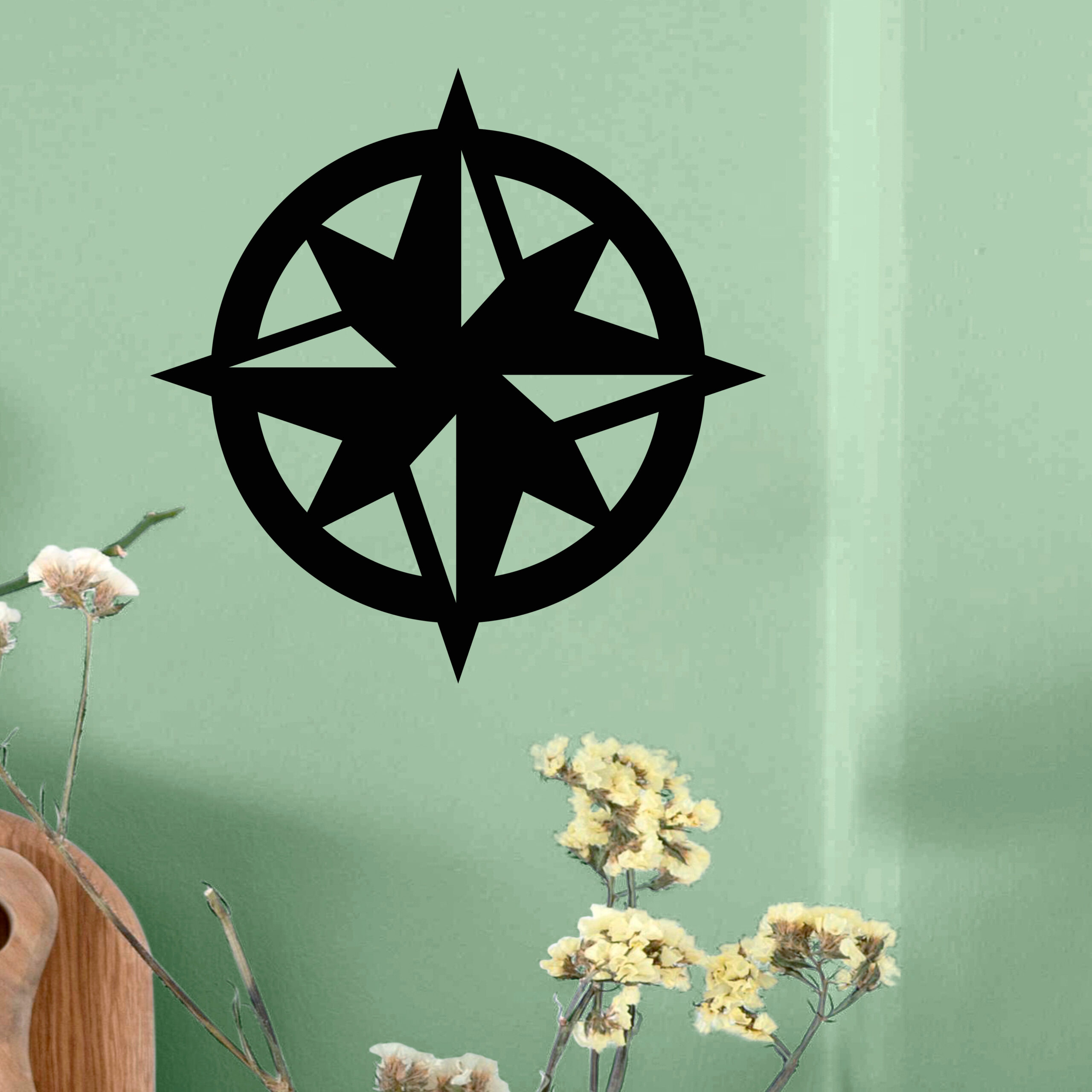 Rose des vents circulaire avec directions marquées.