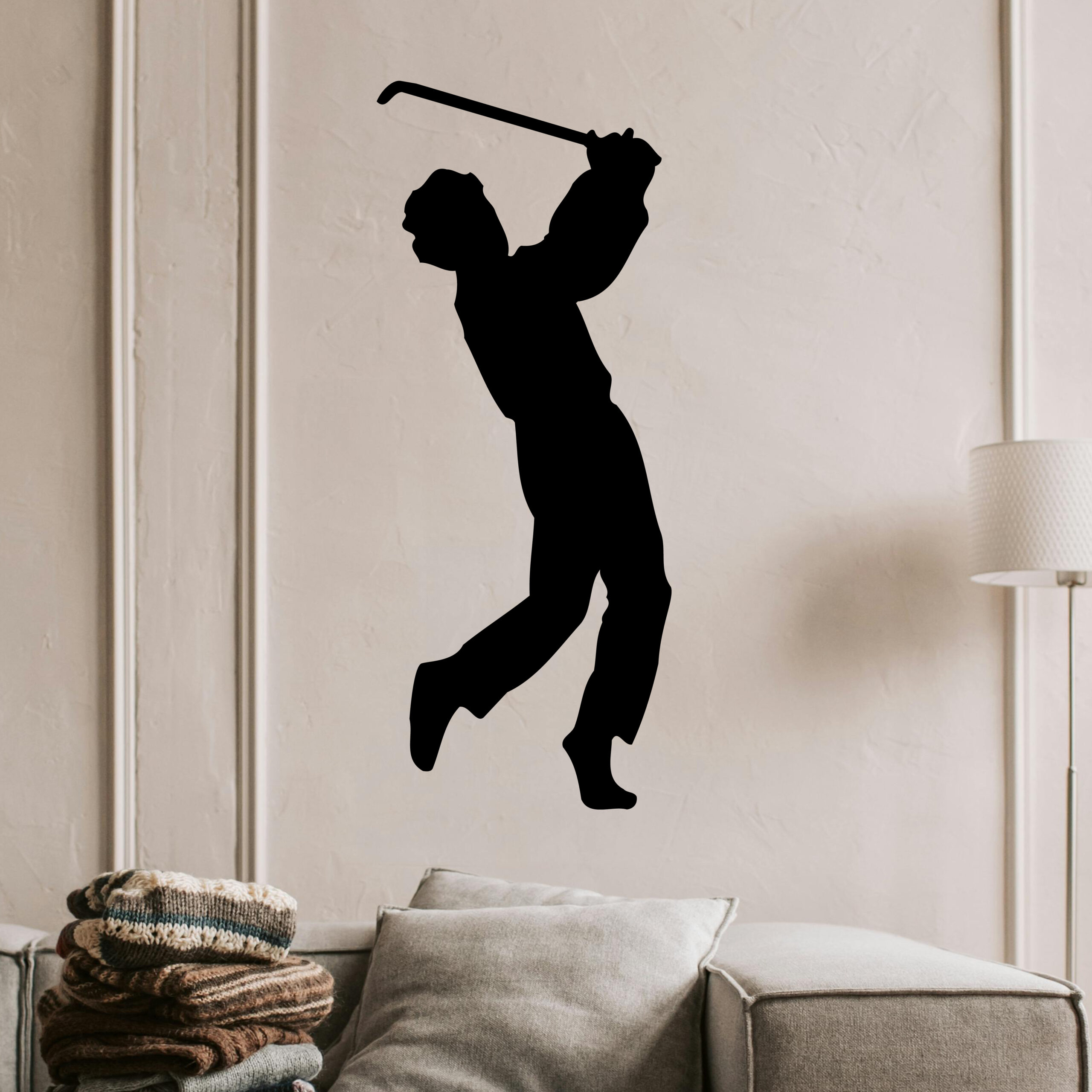 Silhouette de golfeur en fin de geste, équilibre et élégance.