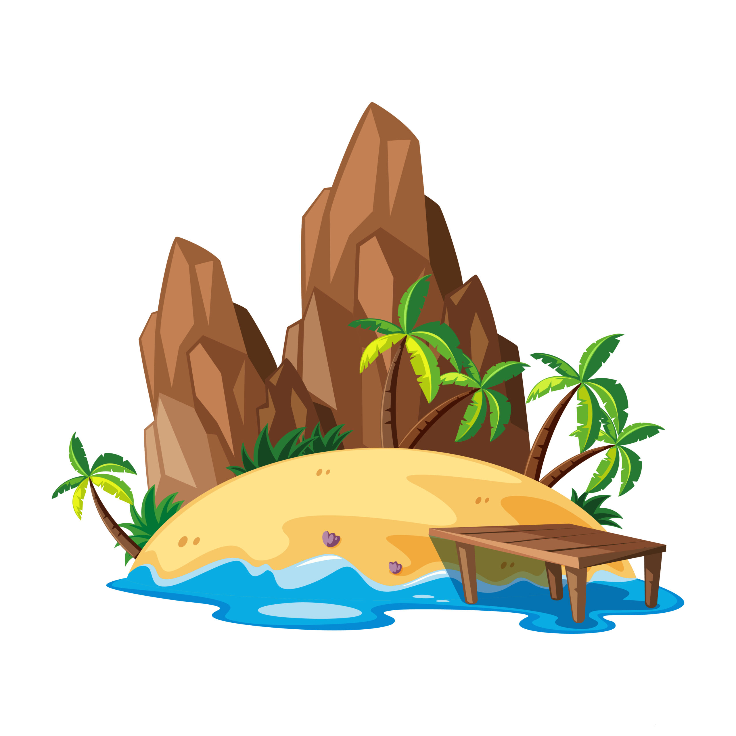 Vue illustrée d’une île rocheuse.