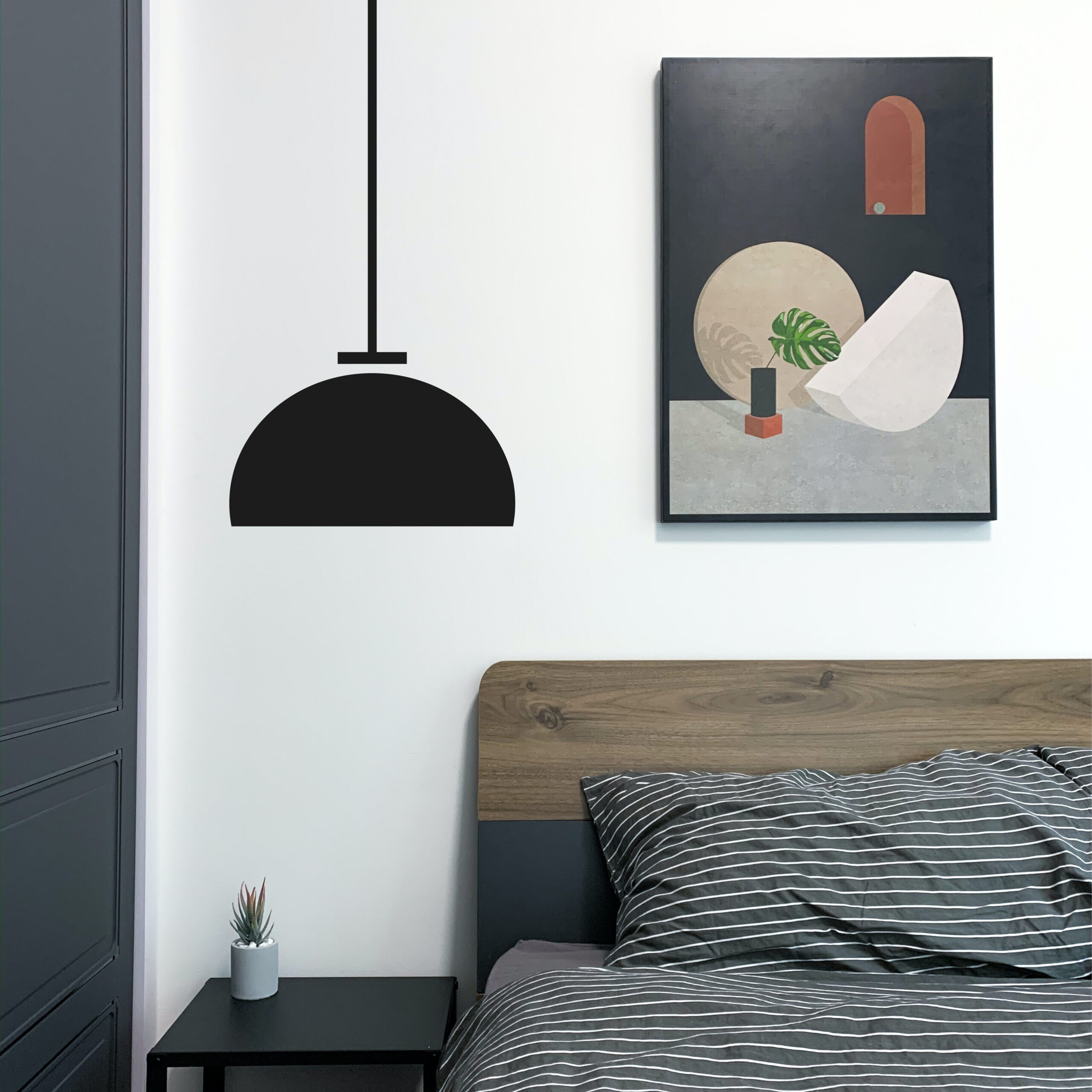 Illustration d’une lampe suspendue au design simple et épuré, évoquant un éclairage décoratif minimal.