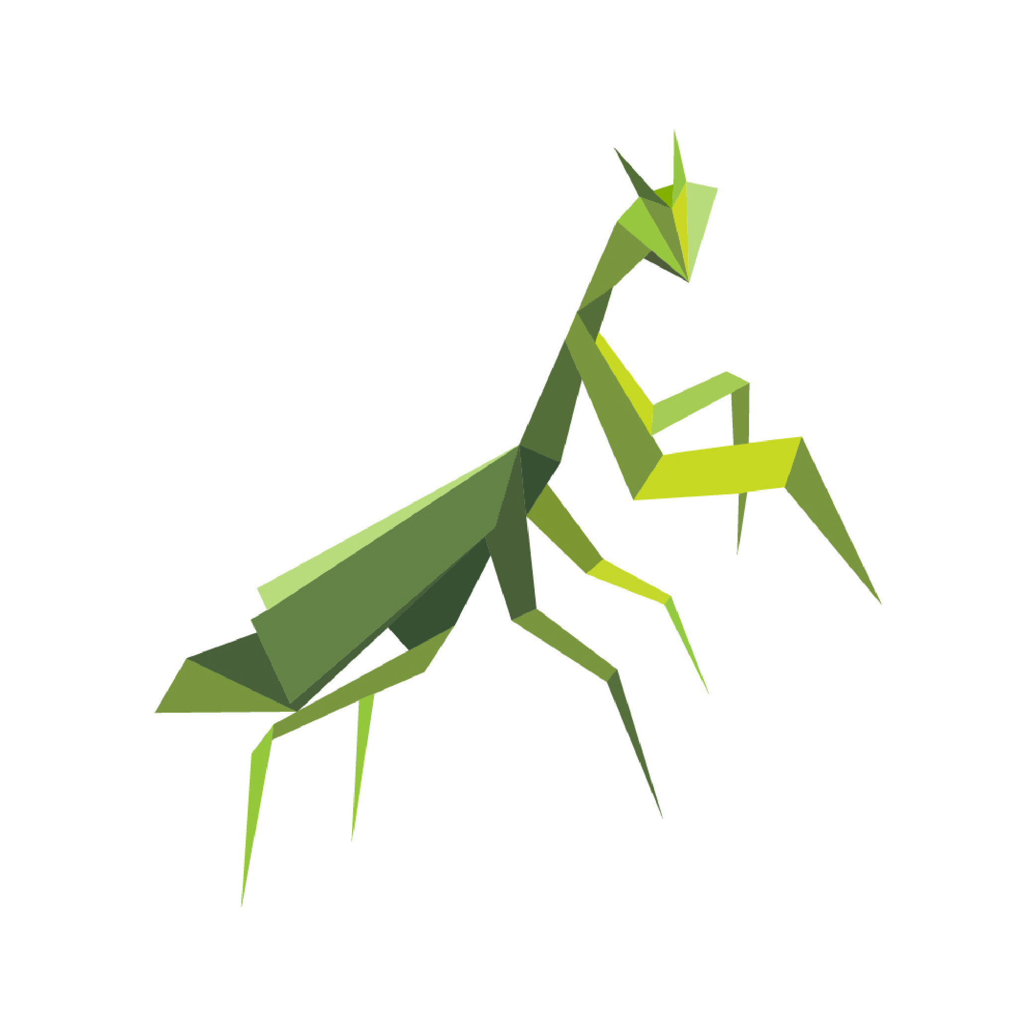 Insecte élancé en origami, inspiré de la nature et du mouvement.