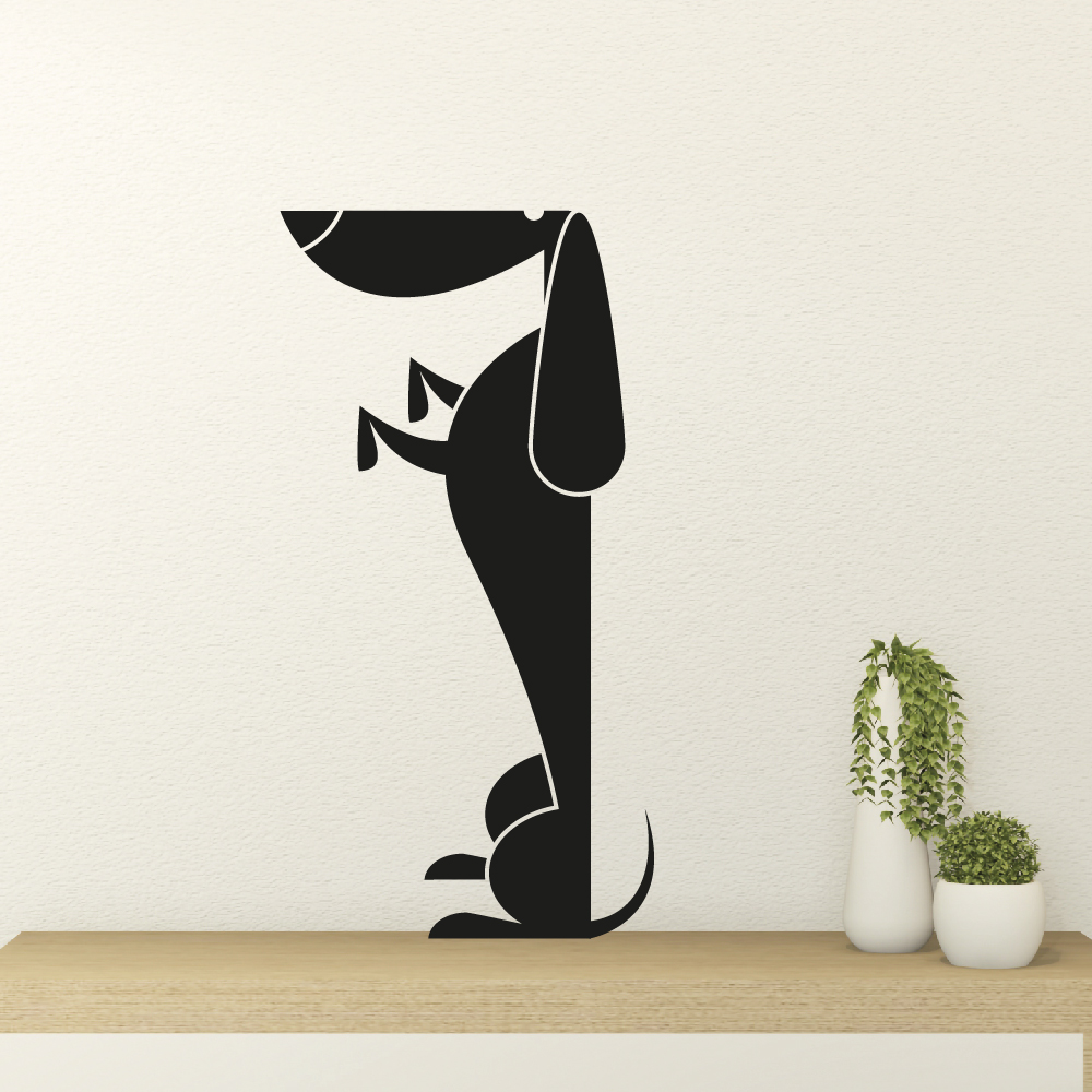 Ce visuel représente un chien stylisé debout, avec une silhouette sobre et élégante, parfaite pour apporter une touche moderne à votre décoration.