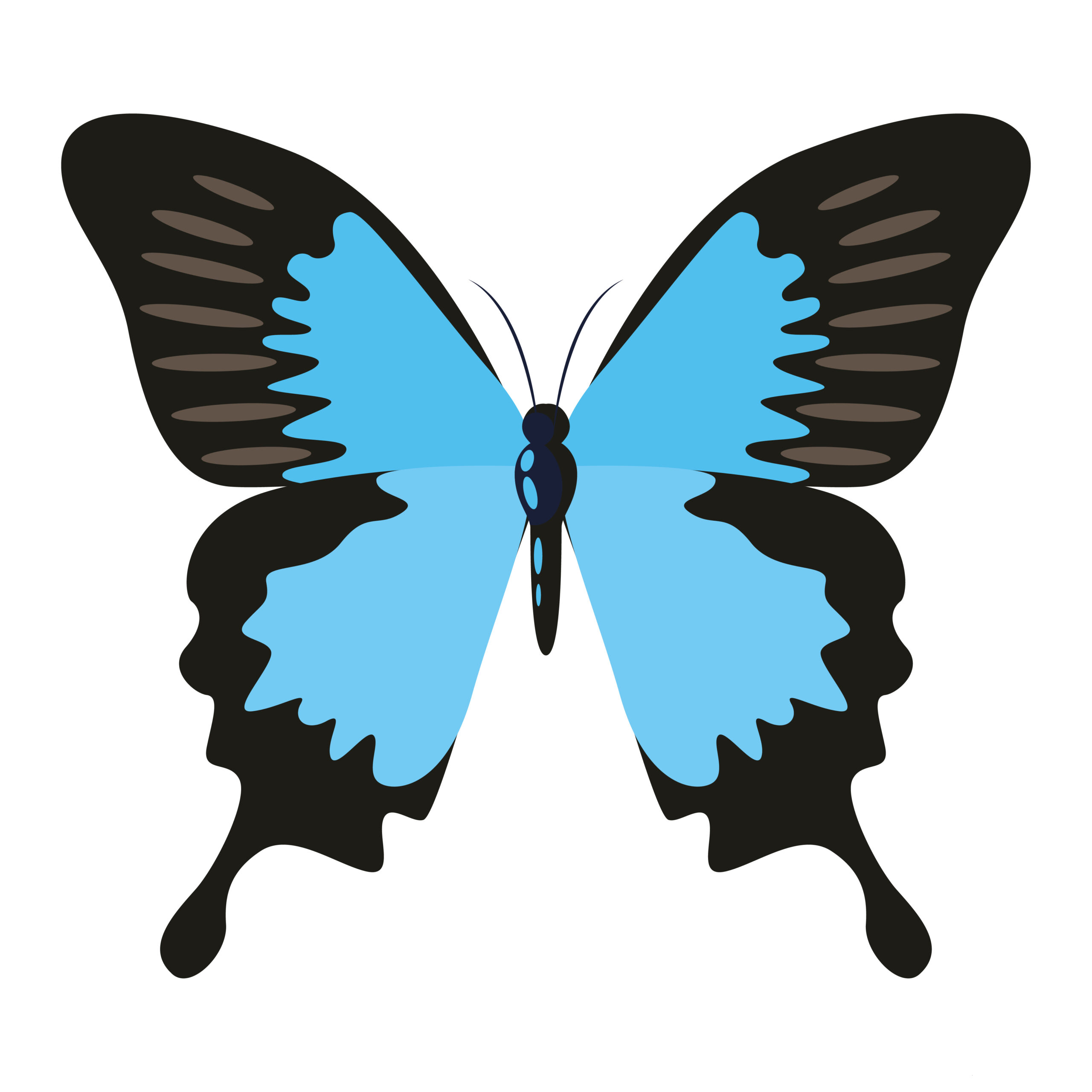 Papillon bleu clair aux ailes symétriques.