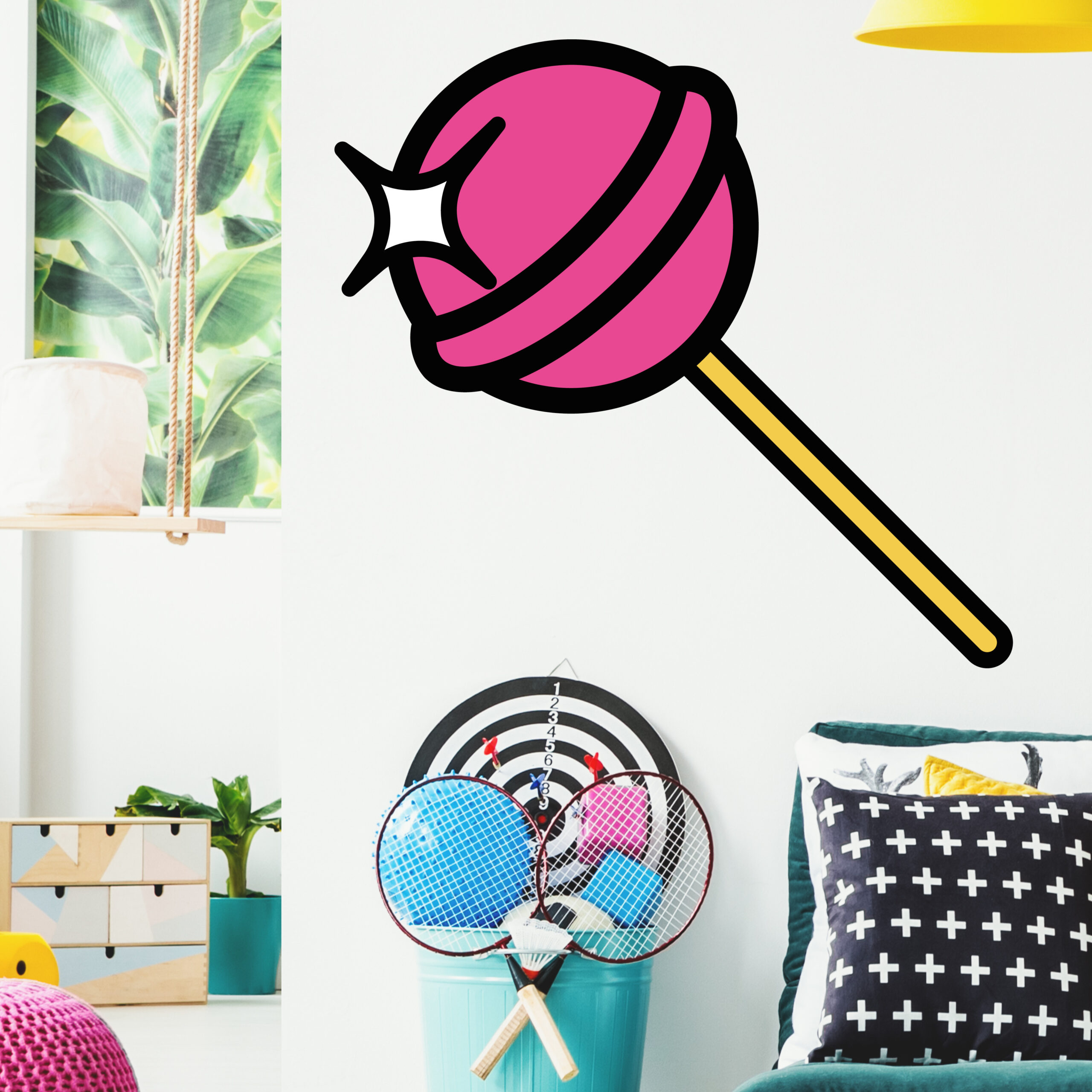 Illustration de sucette colorée au style ludique.
