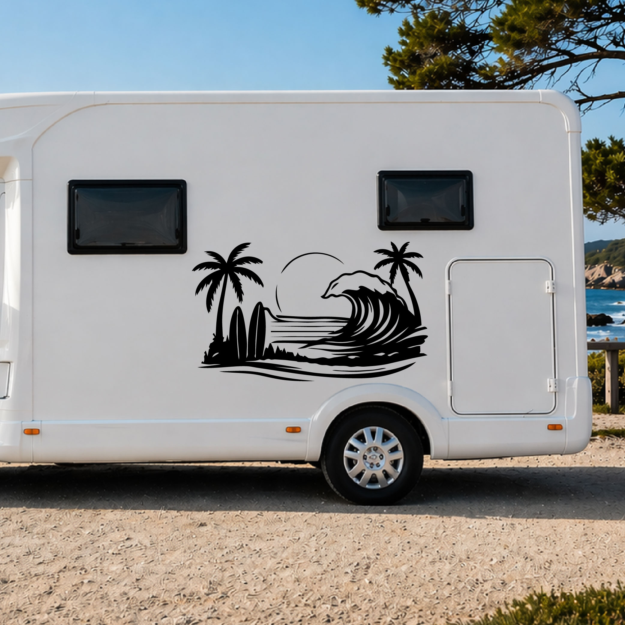 Idéal pour personnaliser un véhicule ou un espace, ce type de visuel apporte une ambiance voyage, nature et liberté, tout en restant discret et élégant.