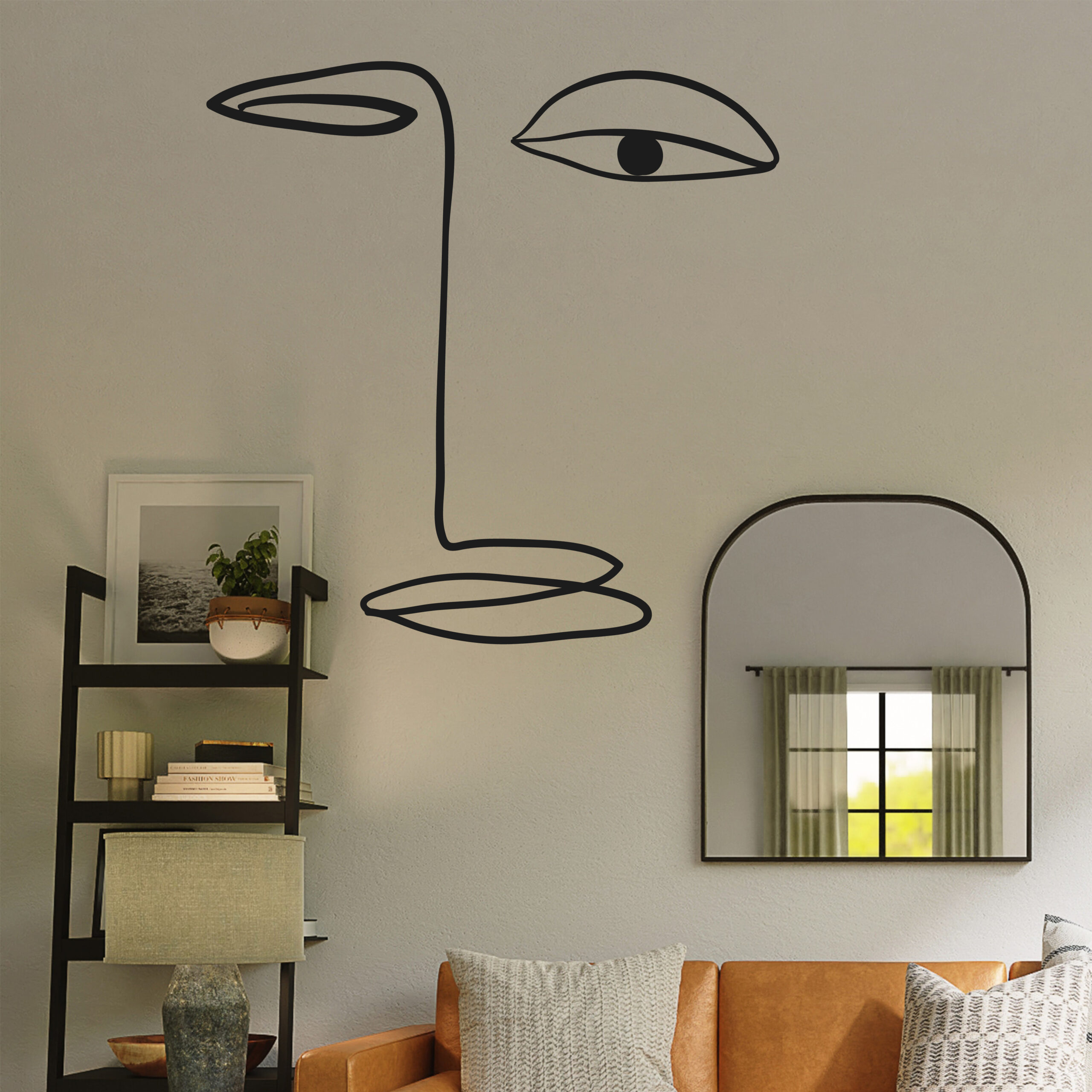 Ce visage linéaire minimaliste propose une interprétation sobre et artistique du portrait. Les traits fins créent une esthétique moderne.